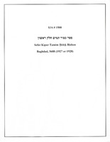 Sefer Kipur Tamim Ḥeleḳ Rishon