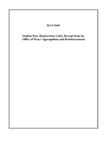 These are three archival documents, including one student pass, one handwritten label, and one receipt from the Office of Water Appropriations and Reimbursements.