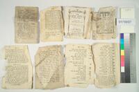 These are groups of book pages. Included are some title pages and some fragments from archival documents.
