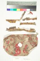 This is a tiq, or Torah scroll holder, used for reading the Torah in synagogue. It is made of wood and covered with velvet. It includes an unadorned glass insert and a painted glass inset for the tiq with a transcription in Hebrew עשאו סלימאן יחזקאל ברוך יצחק חיים סופר היו למנוח אשתו חביבה בת נחום כבאזה Aśu Salima’an Yeḥezḳel Barukh Yitsḥaḳ Ḥayim Sofer Hayu le-Manuaḥ Ishto Ḥavivah bat Naḥum Kabazah.