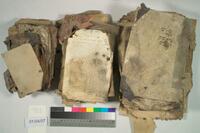 These are groups of book covers. Included are several handwritten annotations and title pages.