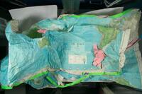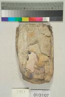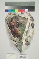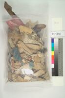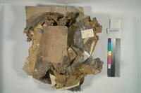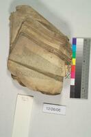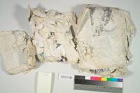These are groups of fragments of pages from books. Found in the fragments is a single photograph, likely from a school document.