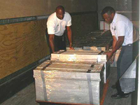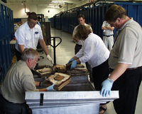 The National Archives staff examines items in the frozen collection upon arrival in the US