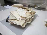Water-damaged archival records were often distorted and required careful handling to permit assessment and further treatment