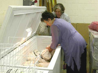 Frozen parchment fragments - still frozen- are placed in a freezer until they can be dried individually